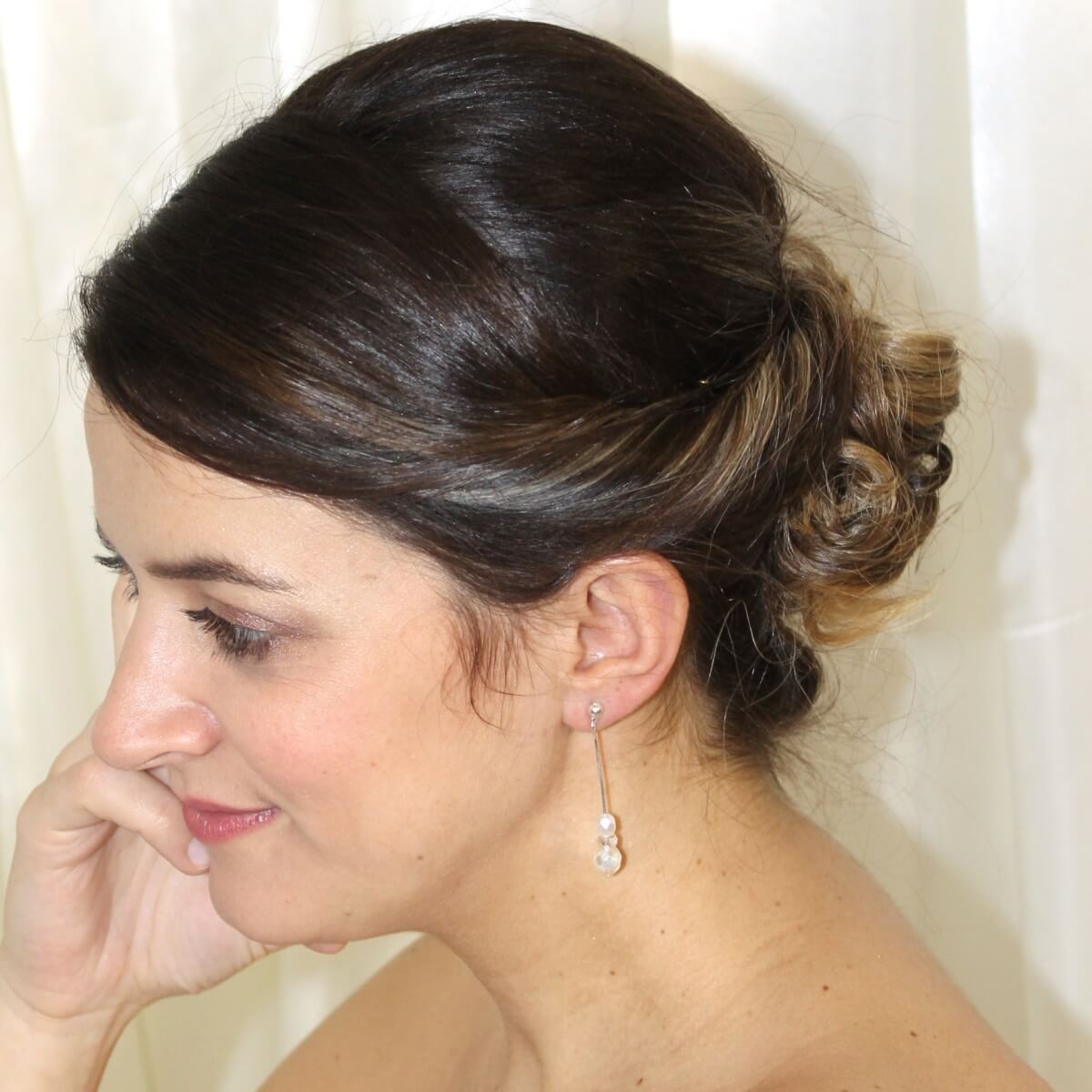 Les Ornements d’Oreilles MARINE,  forment une paire de boucles d’oreilles de mariée pendantes, discrètes et délicates.