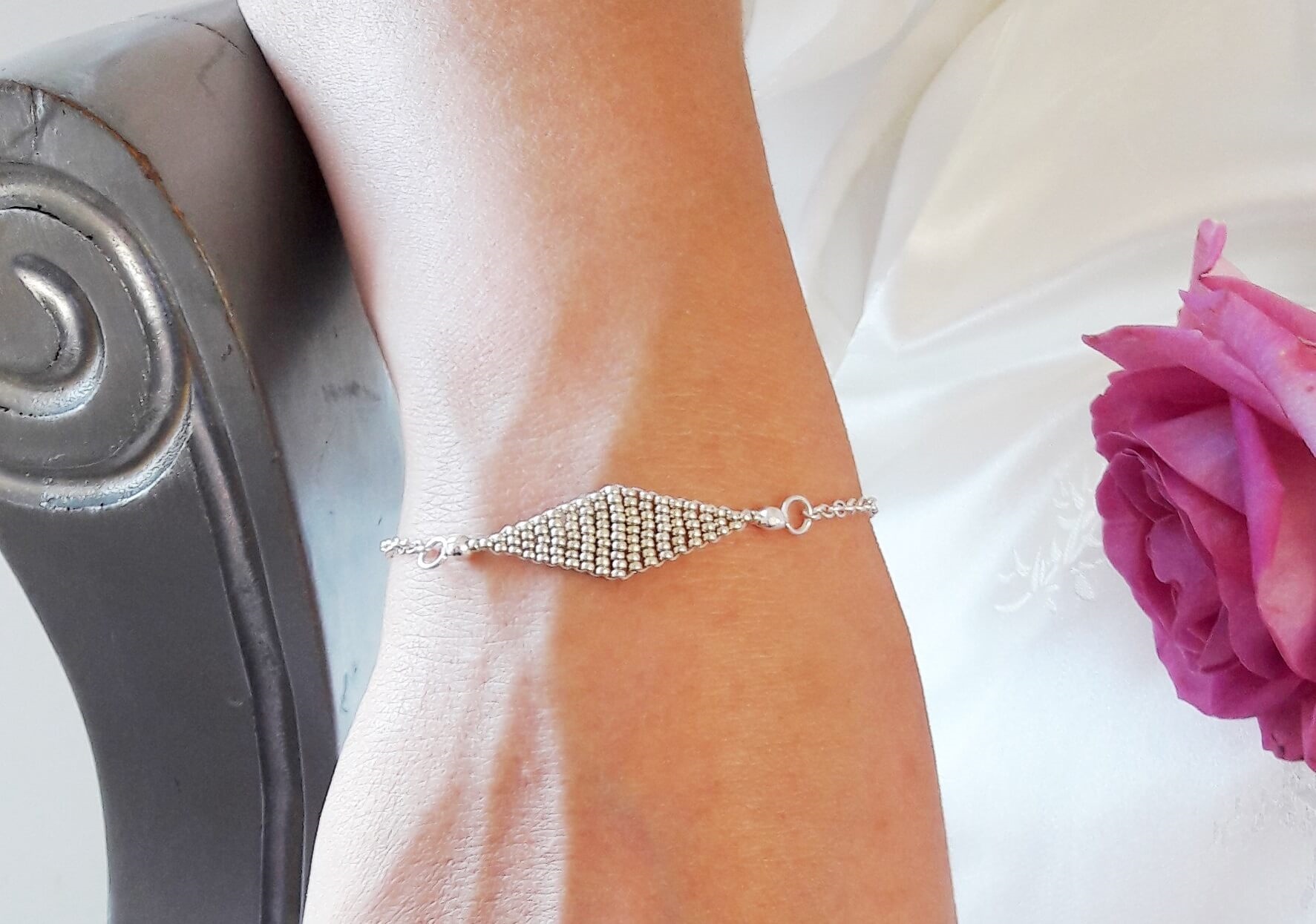Ce bracelet mesure 16 cm et dispose de deux anneaux de réglage afin d’ajuster la taille à votre convenance.