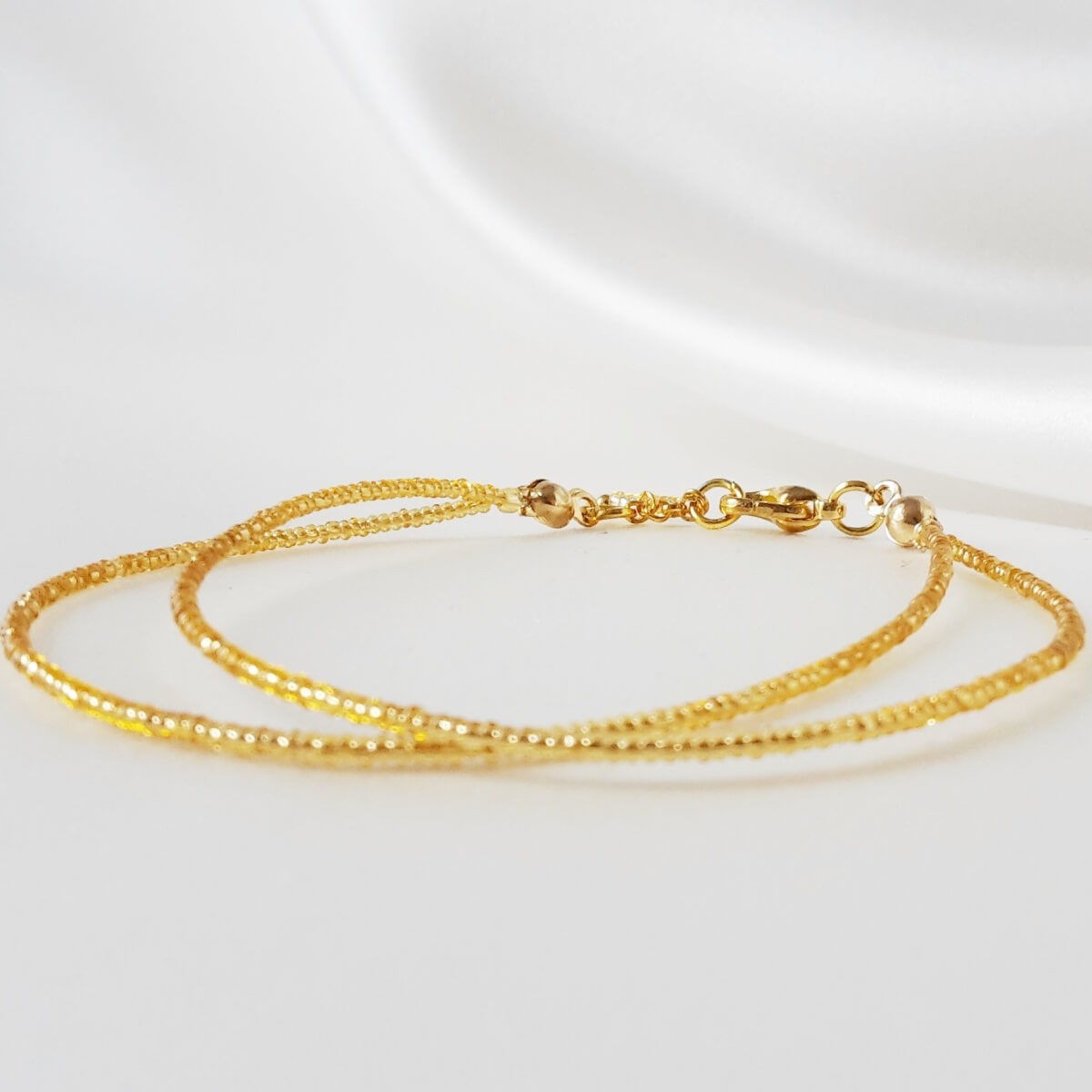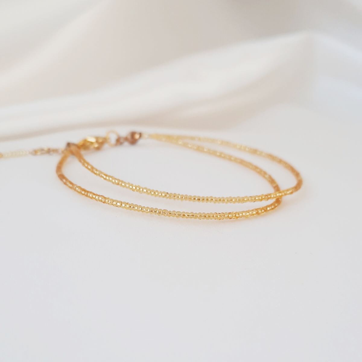 Ce bracelet mesure 16 cm pour le rang le plus petit et 17 cm pour le rang le plus grand, et possède deux anneaux de réglage.
