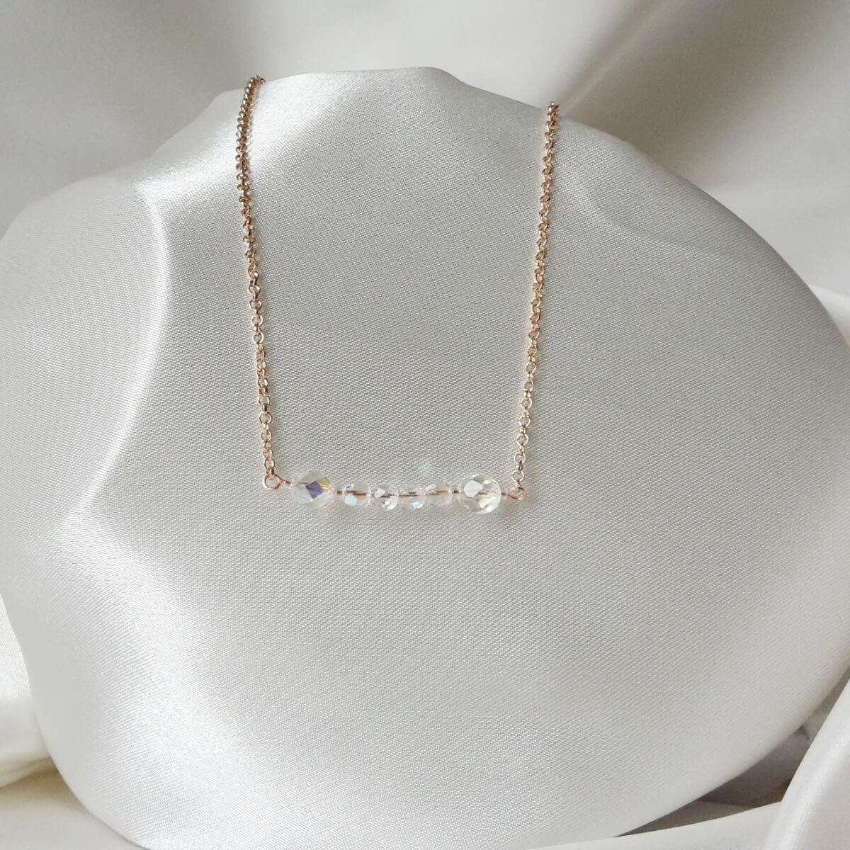 Ce collier mesure 41 cm et possède deux anneaux de réglage afin d’ajuster la taille à votre convenance.