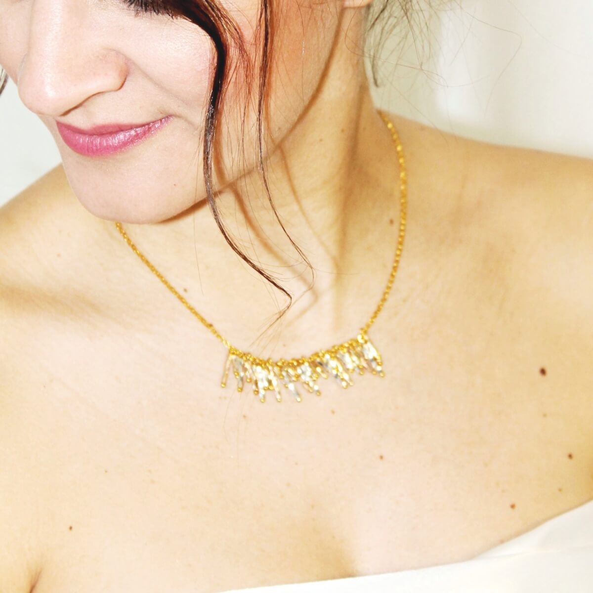Cette parure de bijoux de mariage pourra être reportée au quotidien pour habiller une tenue simple ou bien avec une tenue de cérémonie plus habillée.