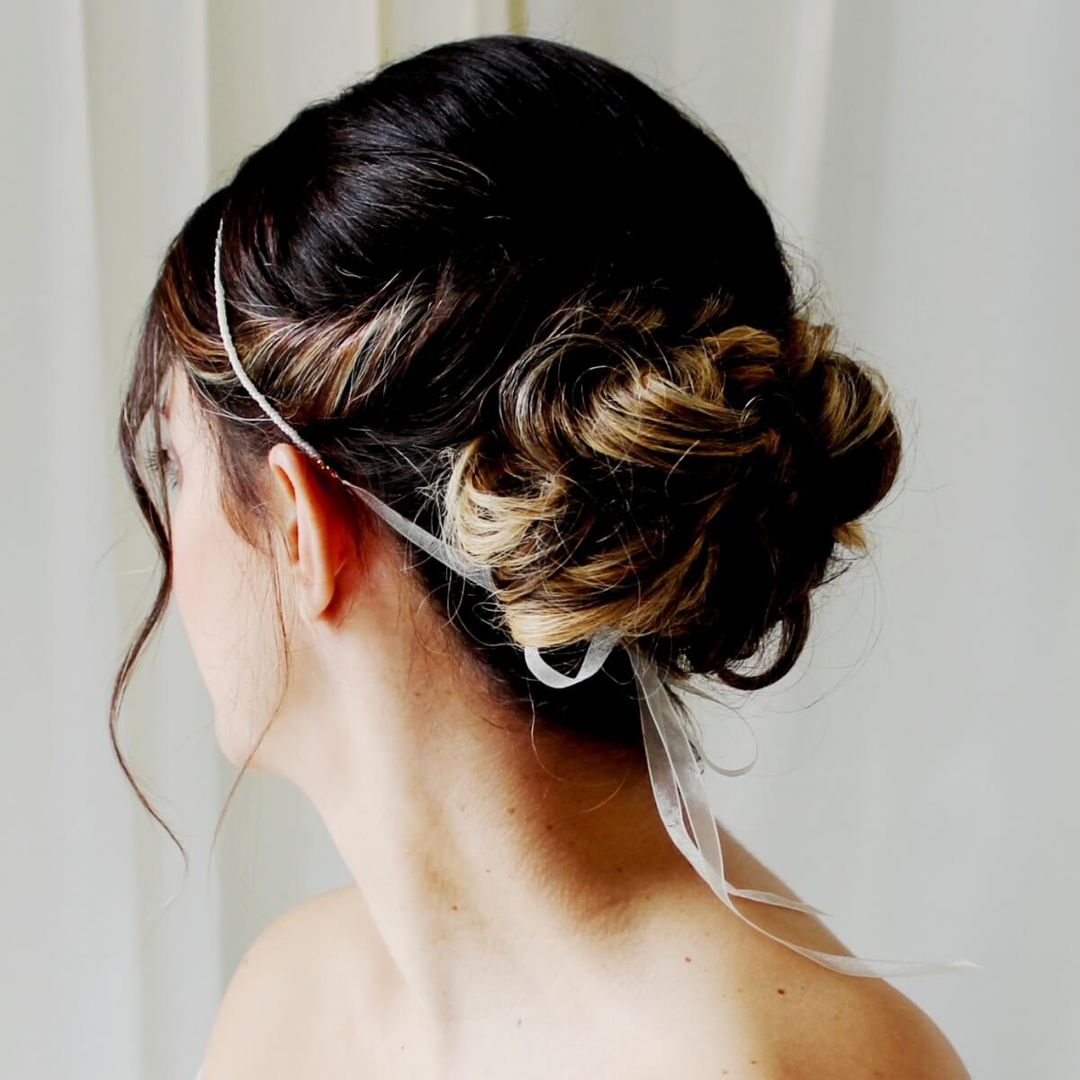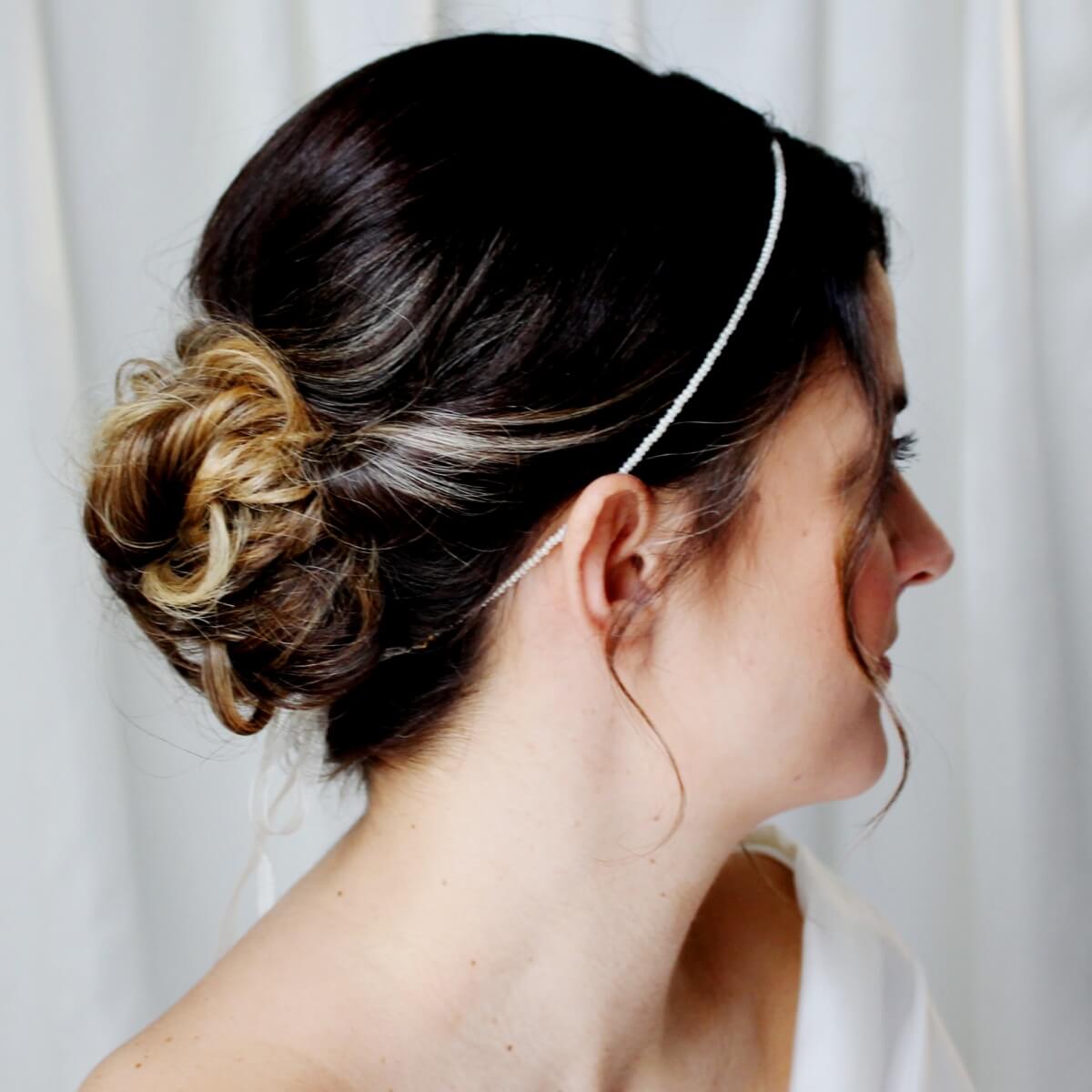 Cet accessoire de coiffure pourra agrémenter une coiffure de mariée travaillée, comme un chignon, mais pourra également se porter sur une chevelure détachée pour effet plus Bohême Chic!