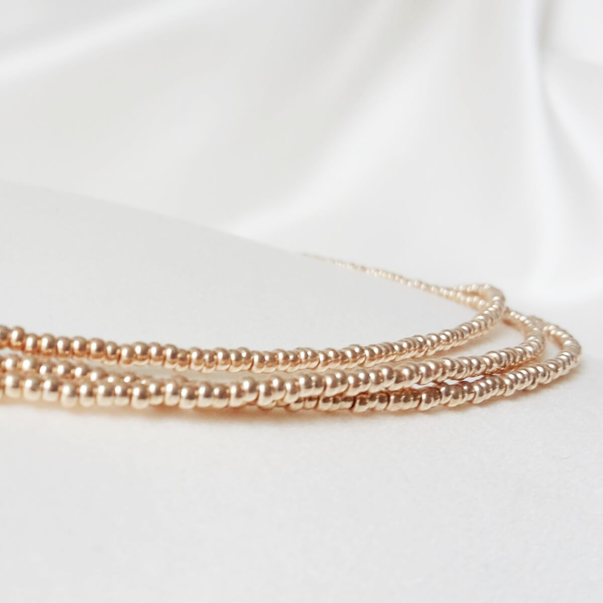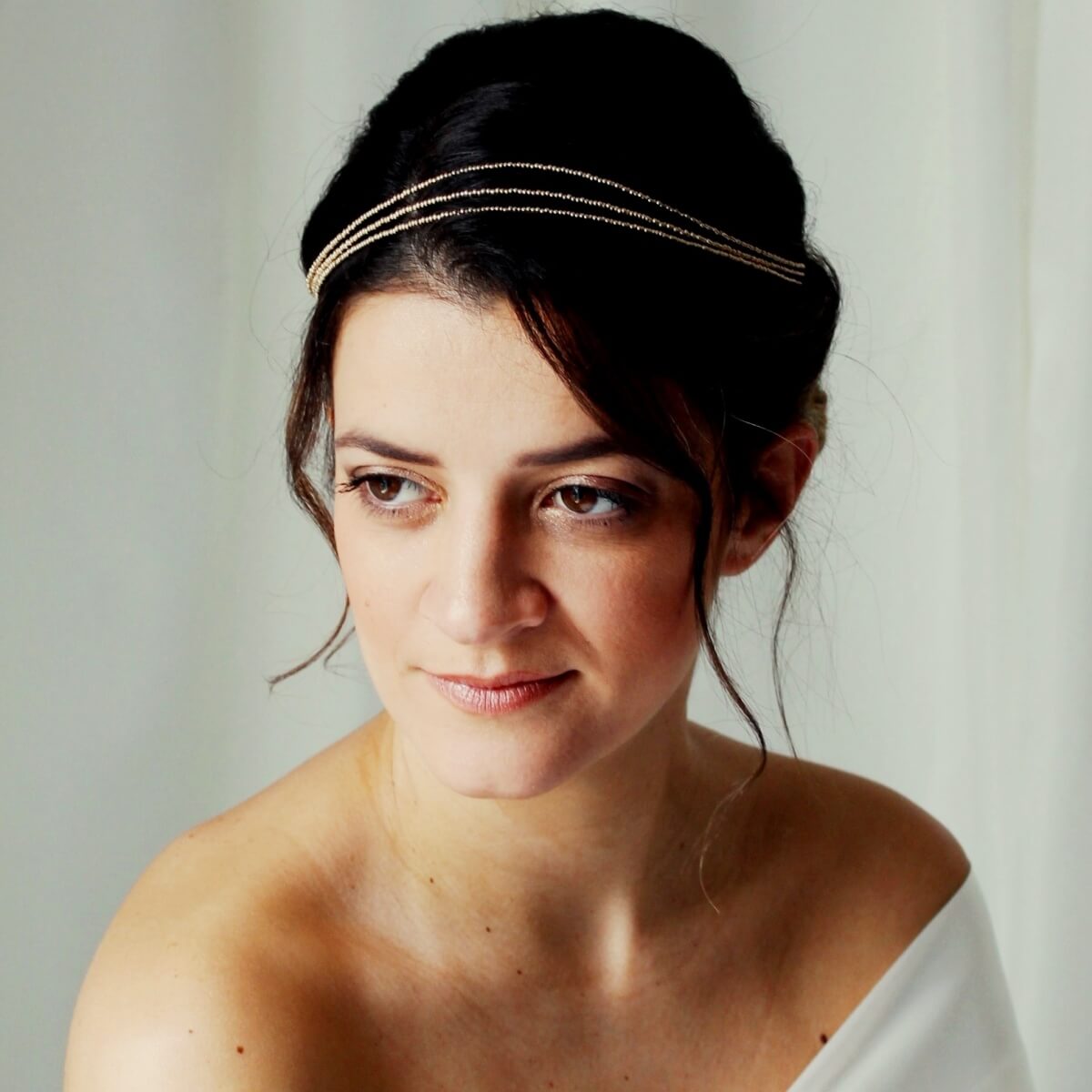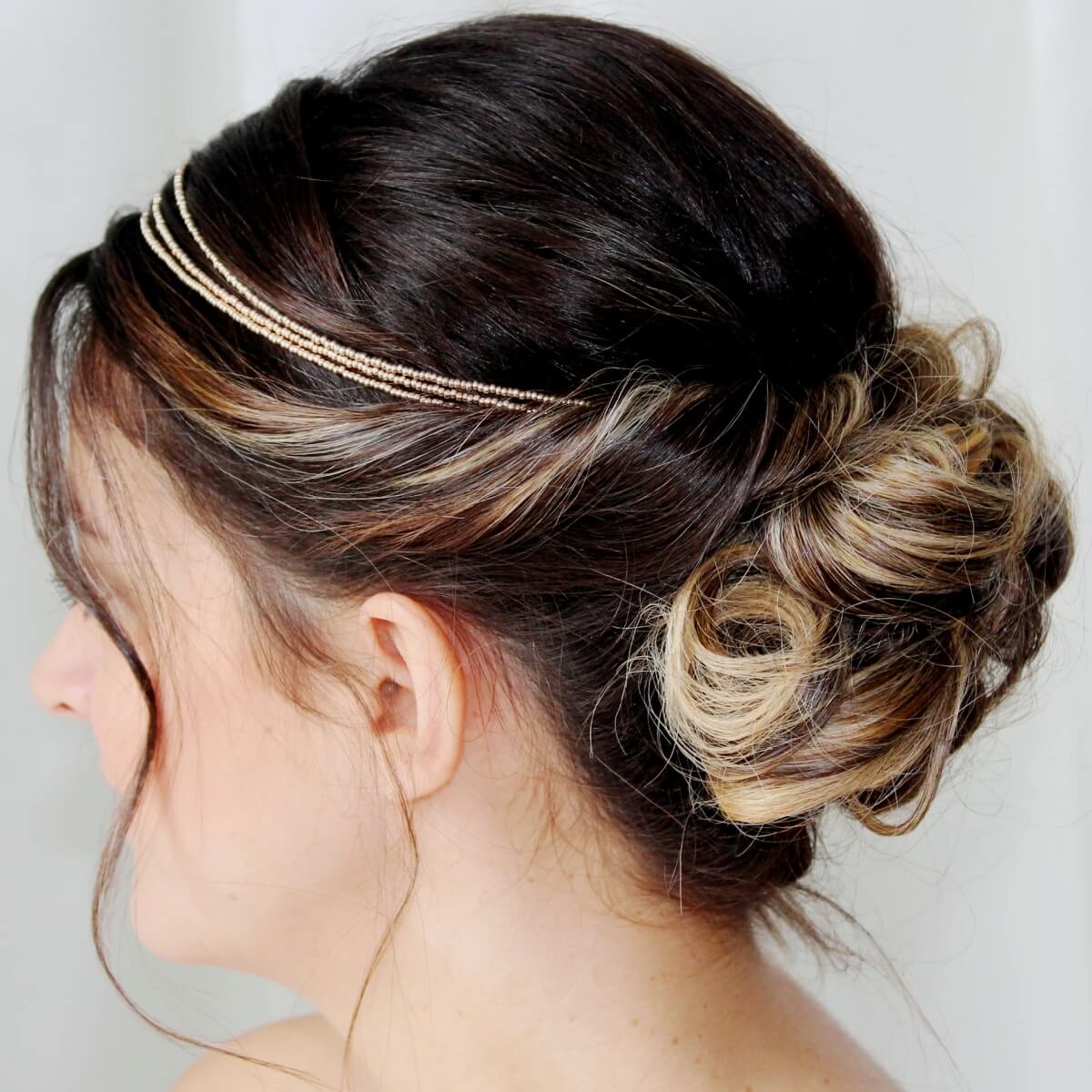 Cet accessoire de coiffure se compose de 3 fils de perles de rocaille « Miyuki » couleur Champagne, entrelacés ensemble.