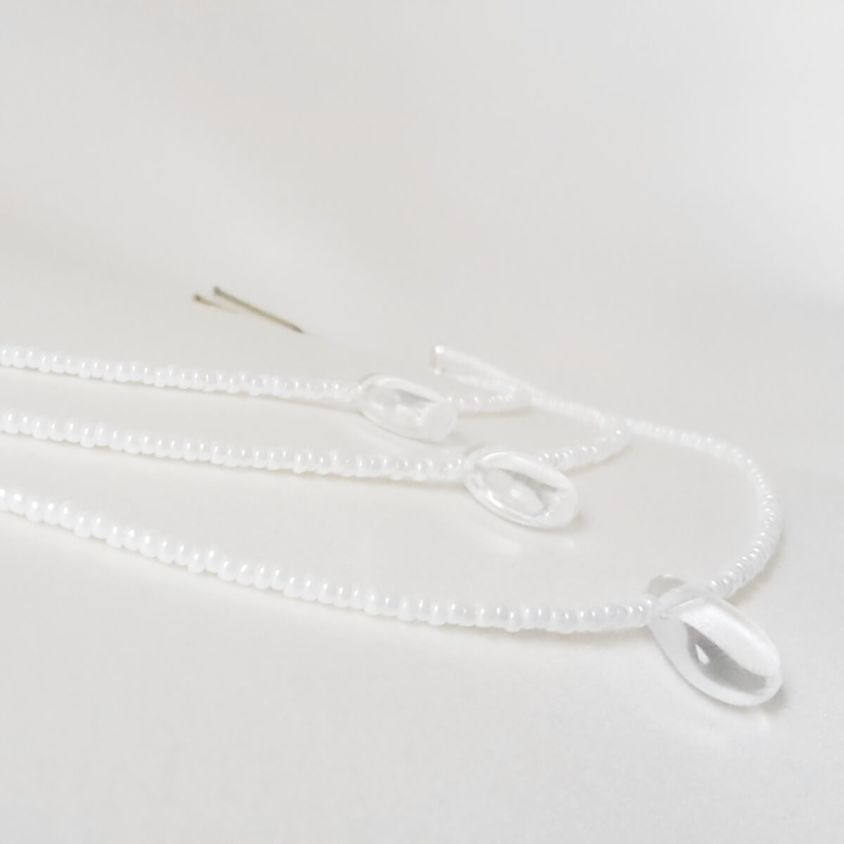 Au milieu de chaque rang se trouve une goutte plate en verre transparent.