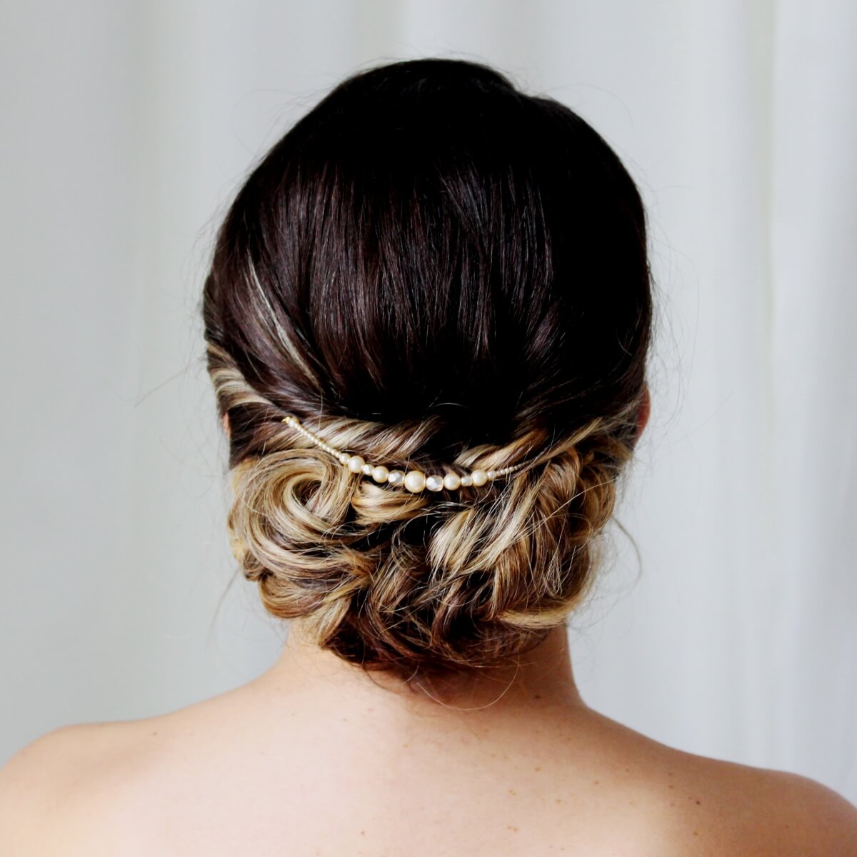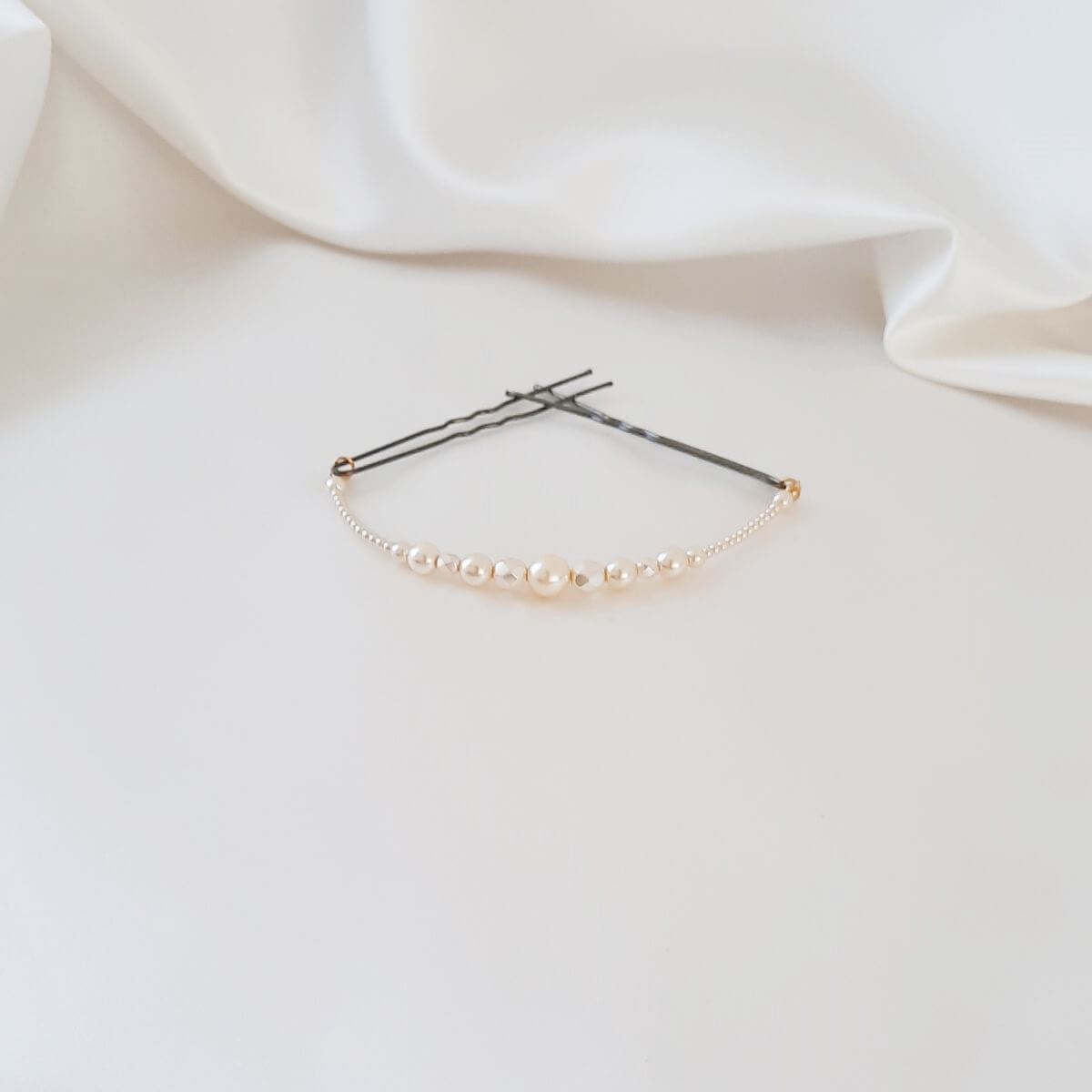 Cet ornement de cheveux mesure 13 cm et est idéal pour sublimer un chignon bas. Il se fixe grâce aux deux épingles à fixer dans les anneaux à chaque extrémité du bijou. Épingles noires ou bronze fournies.